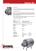 Zusammenfassung Hyginox SE è una gamma di pompe centrifughe monoblocco di disegno sanitario, compato ed efficente
