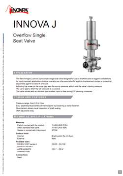 Das INNOVA-Ventil Typ J ist ein pneumatisches Einsitzventil, das als Überströmventil in hygienischen Anlagen eingesetzt wird.